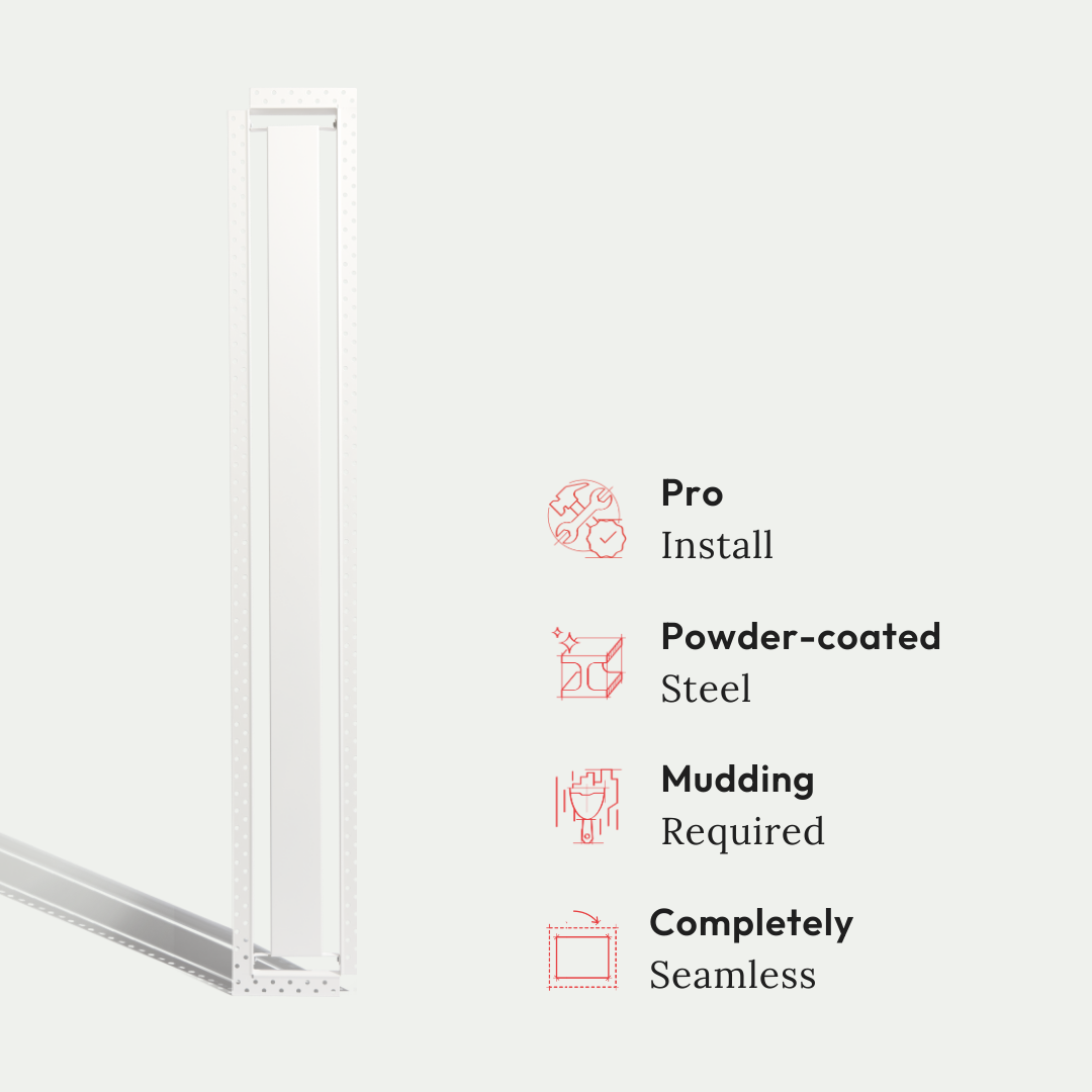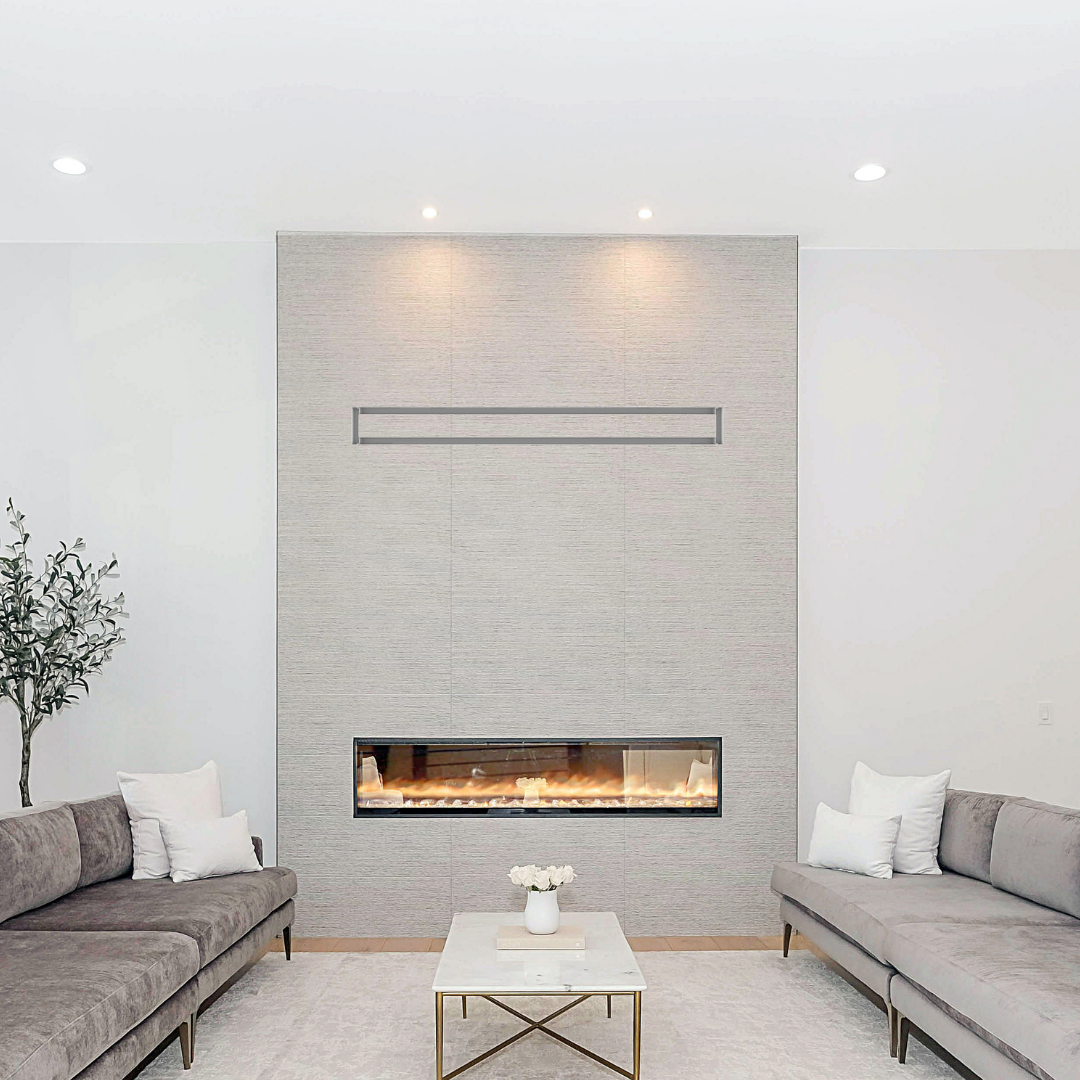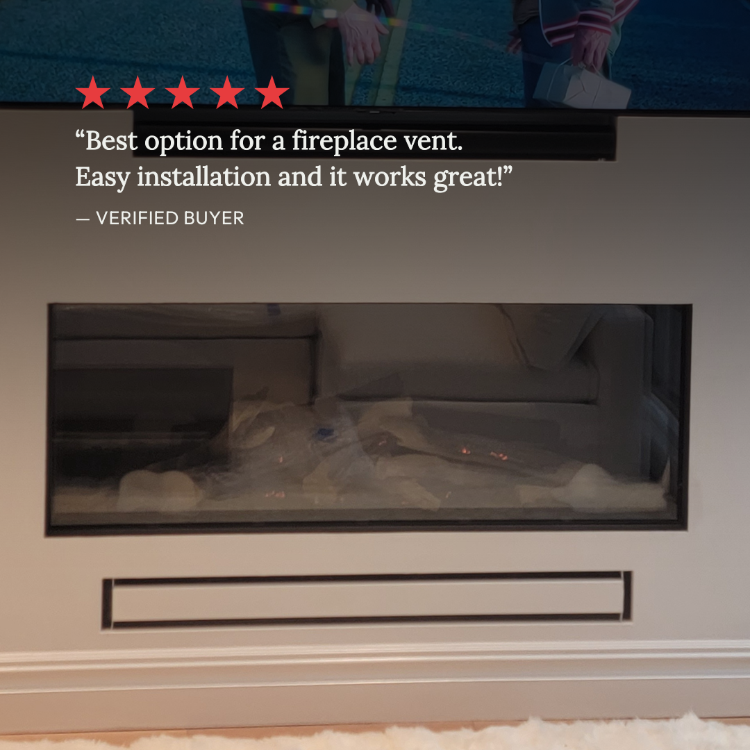 Ultra-minimalist fireplace vent. Customizable center tray with a flush finish for a seamless design that blends right into the wall — once installed, only a rectangular air channel is visible. Compatible with drywall, wood, stone, tile etc. Pro install in 30 minutes.