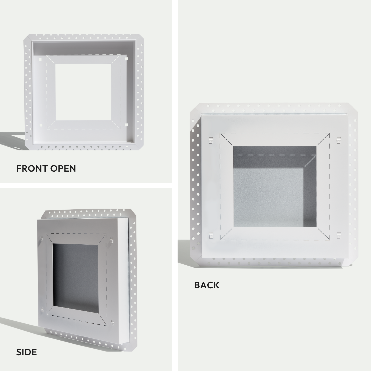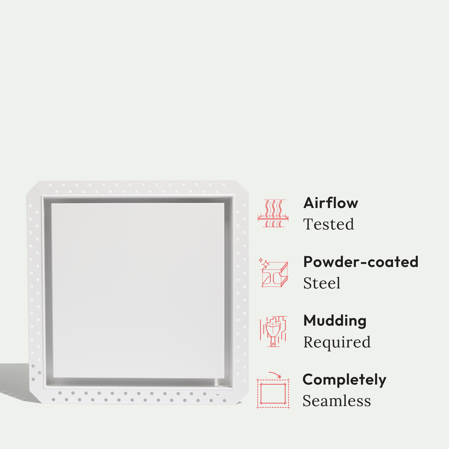 This product is a flush air vent for walls and ceilings, designed specifically for drywall or gypsum applications. If you're working with other materials, use the Framed Exhaust Mount [Lite] or Framed Exhaust Mount [Luxe] — these are compatible with any surface.