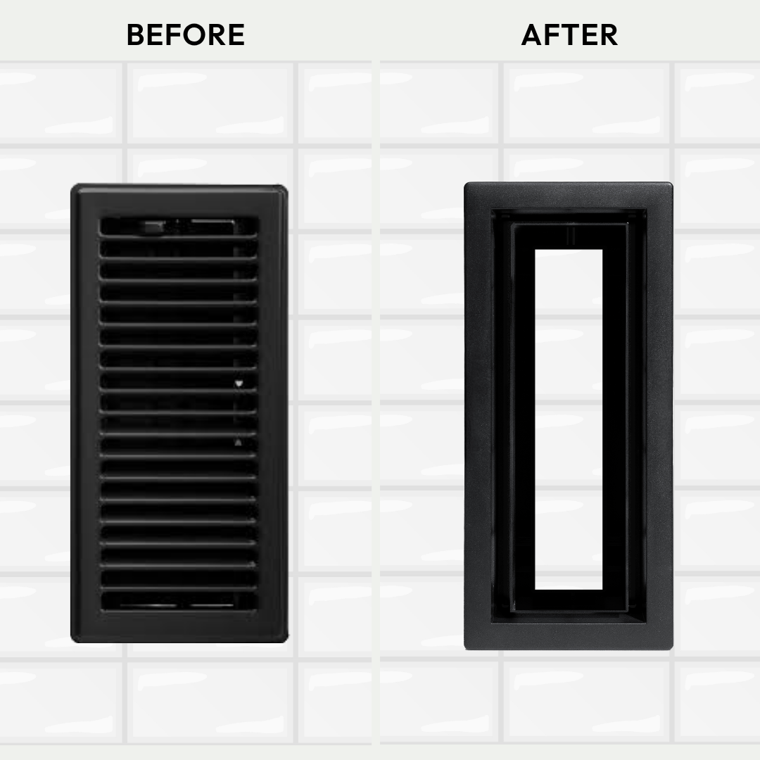 A customizable center tray hides the vent in plain sight for a clean, modern finish. Better looking than a traditional grille, it’s a design-forward upgrade that works with any material. Super-easy, 15-minute DIY install. Retrofit anytime. HVAC-compatible and works with all flooring types.