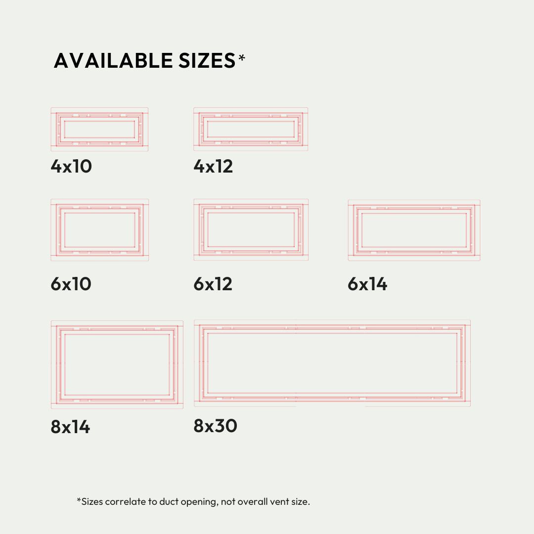 No, we don’t offer custom sizes or colors. However, we do have a wide range of sizes available, and you can customize Fittes vents with a leftover piece of surface material — simply cut and glue the material onto the inner tray for a minimalist floor vent that blends right into the floor.