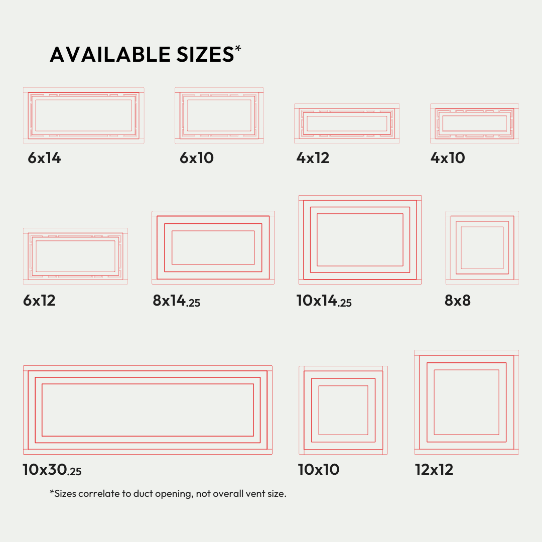 We’ve reimagined old-fashioned grill vents.This high-performance, ultra-minimalist design has all the features of the Framed Wall Vent [Luxe], plus a double air channel for luxury and power—with +50% increased airflow¹. It’s serious luxury and high performance in one, an investment in both design and airflow.